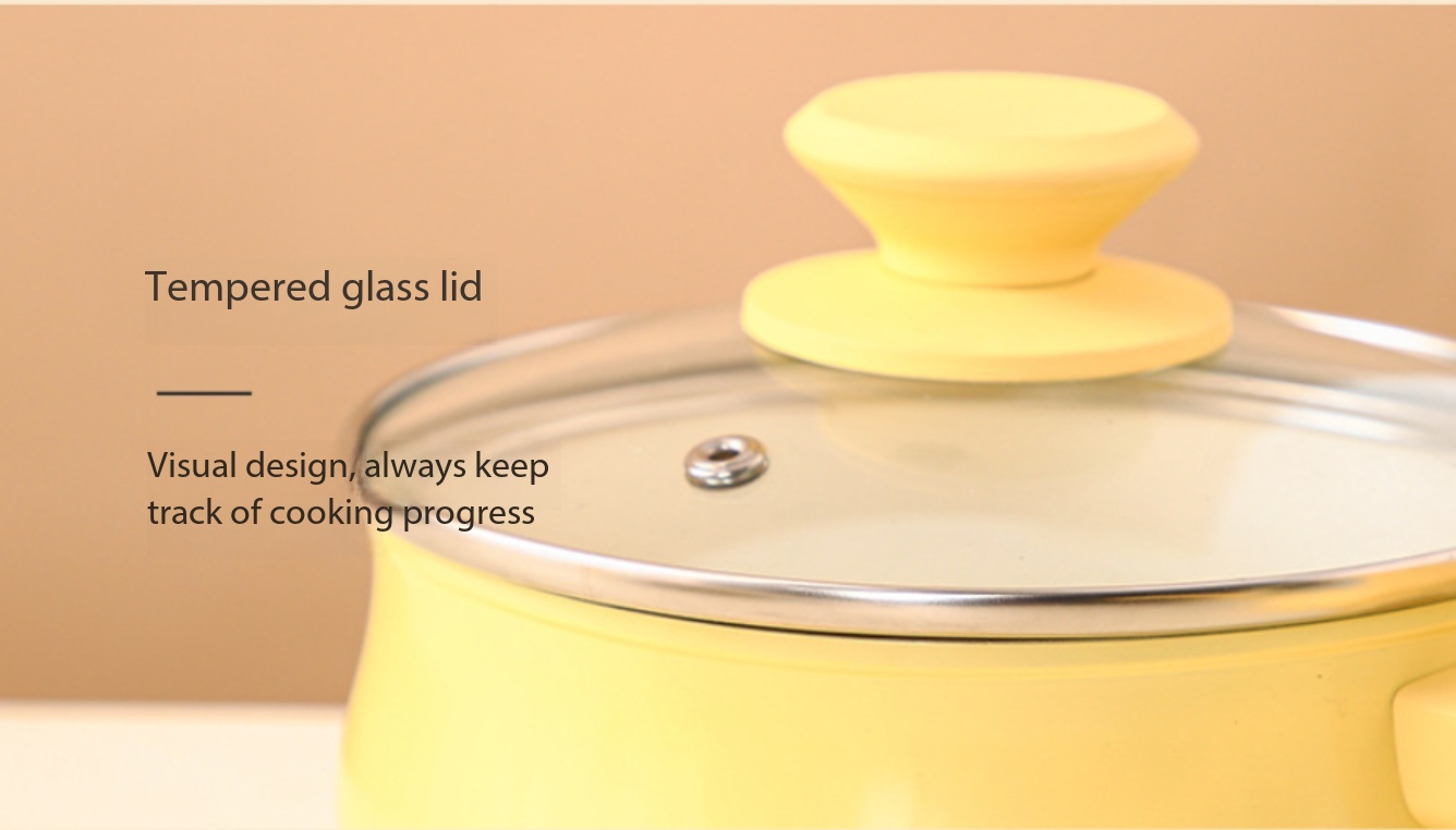 Cooking should be simple, efficient, and enjoyable. This ceramic non-stick yellow pot is made from durable aluminum alloy to provide fast, even heat distribution for consistently well-cooked meals without hot spots.