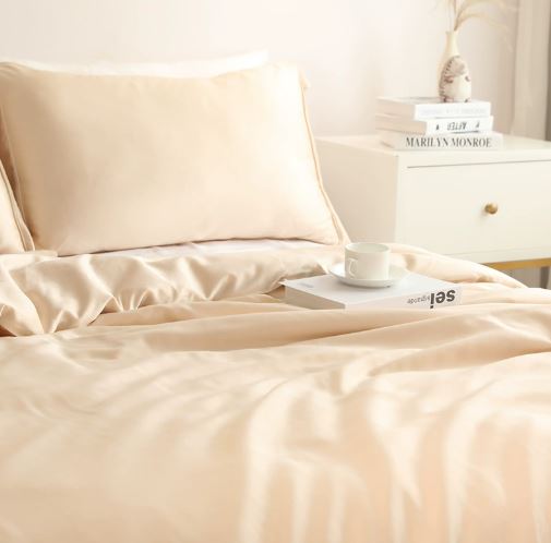 Bring warmth and elegance to your bedroom with this champagne-colored four-piece bedding set made from bamboo fiber. Naturally soft, breathable, and gentle on the skin, bamboo fiber provides a smooth, comfortable touch that enhances your sleep quality every night.