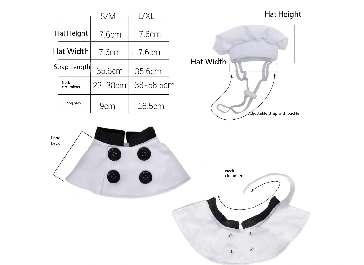 Dog/Cat chef uniform designed for comfort and style, available in S, M, L, and XL for small to large dogs/cats.