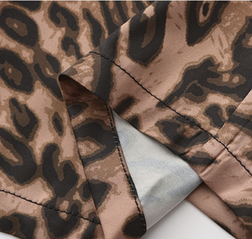 This leopard print nightgown set is designed to offer a perfect blend of comfort and fashion. Made from soft polyester fiber, it provides a lightweight, breathable feel that is gentle on the skin, making it ideal for a restful night’s sleep or lounging at home.