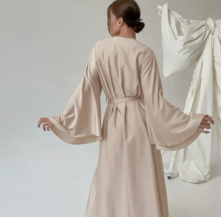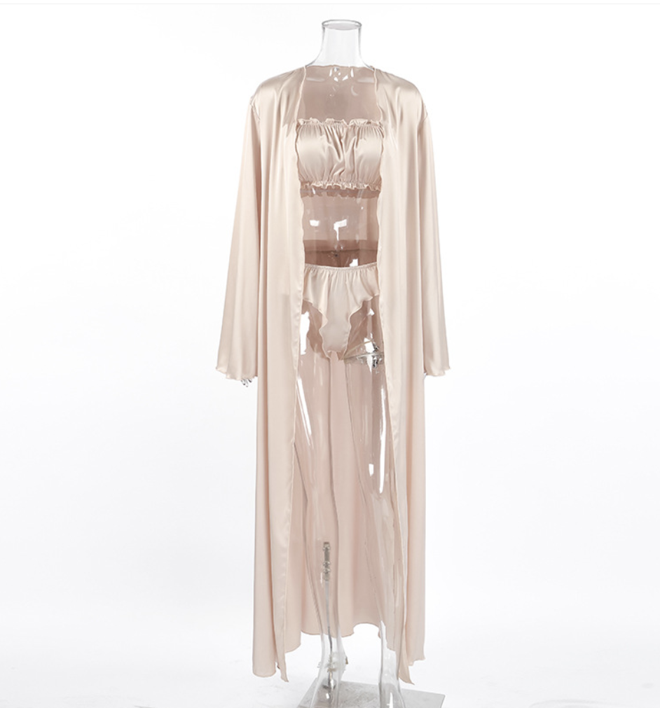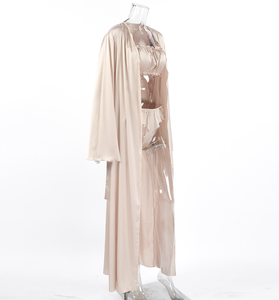 Available in versatile khaki and black, this set elevates your sleepwear wardrobe with a refined and elegant look. Perfect for lounging at home or enjoying a relaxed evening, the long sleeves and coat-style design provide warmth and sophistication.