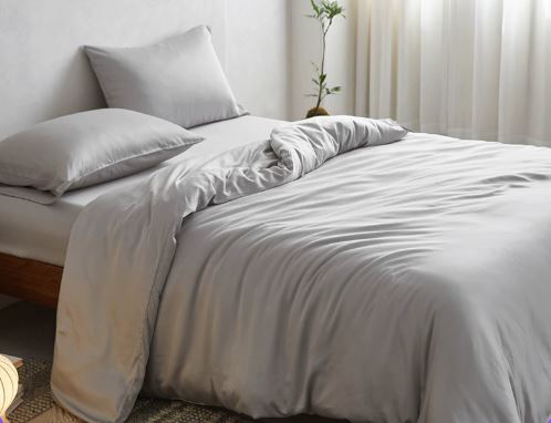 Silver grey lyocell luxury print 4-piece bedding set. Soft, breathable, and cool for spring and summer, blending elegance and comfort.