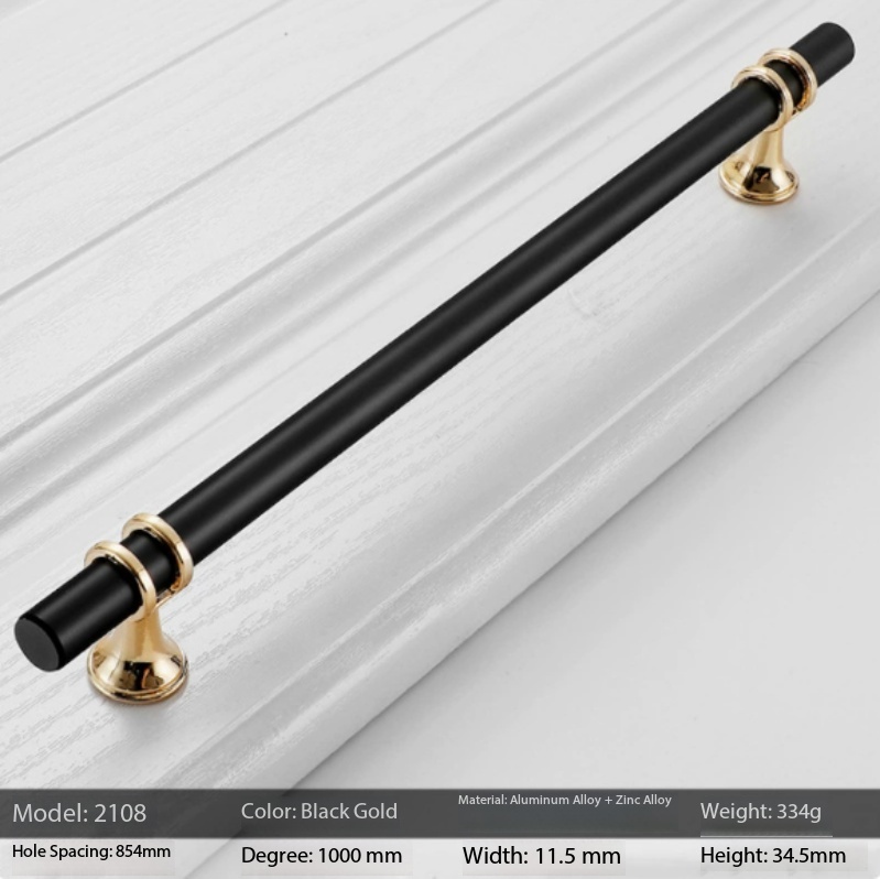 Modern aluminum cabinet door handles designed for drawers, wardrobes, and furniture doors. Made from durable aluminum and zinc alloy, these cabinet pull handles offer corrosion resistance, smooth grip, and long-lasting performance. Available in multiple sizes and colors: Black & Gold, Gold & Gold, and Black & Chrome. Ideal for kitchens, bedrooms, offices, and hotels.