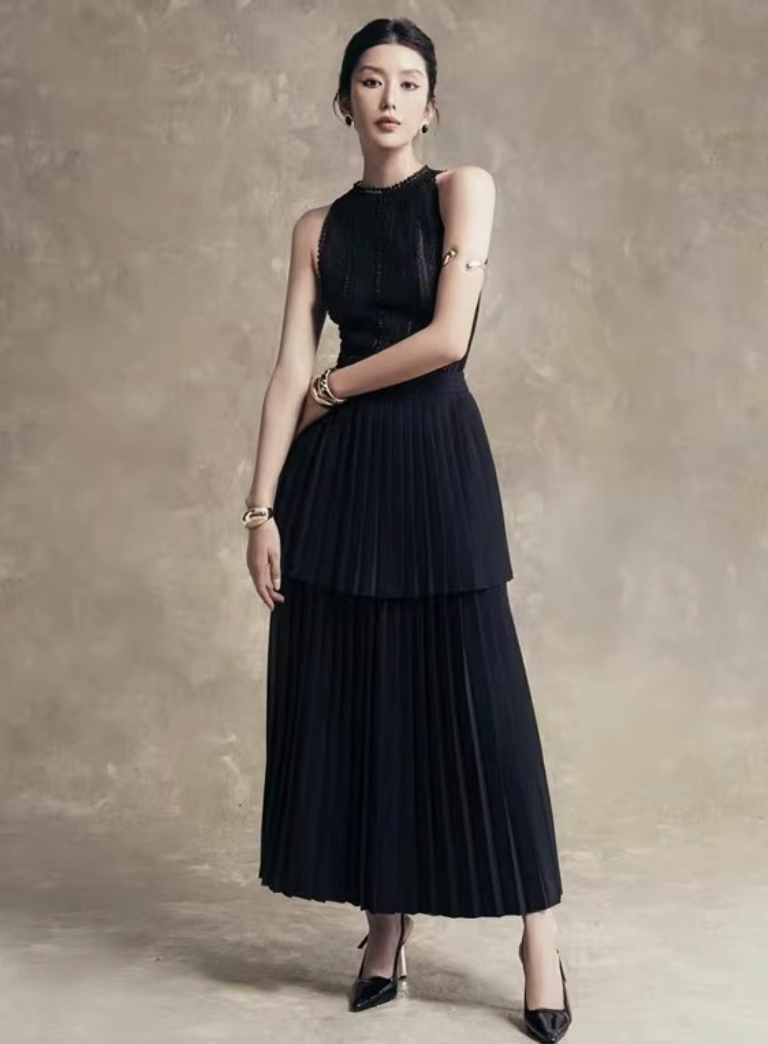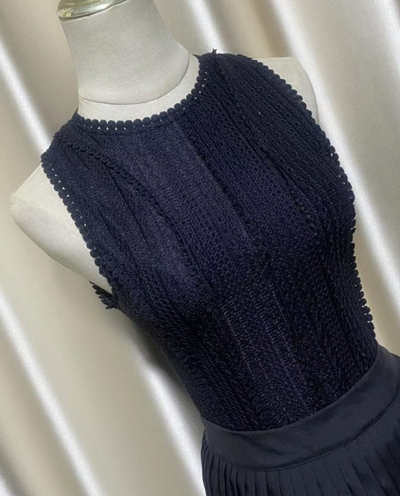 This sophisticated two-piece set features a round neck sleeveless lace vest top paired with a matching skirt, crafted from high-quality polyester fiber for a soft, lightweight, and comfortable fit. The delicate lace detailing adds a feminine and refined touch, making this set perfect for parties, formal events, or special occasions.