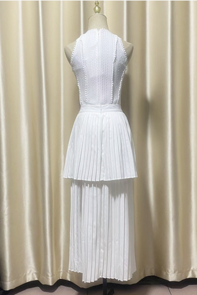 Designed to flatter the figure while offering ease of movement, the sleeveless vest top and coordinated skirt create a polished, stylish silhouette. The classic White and Black colors ensure versatility for a variety of events.