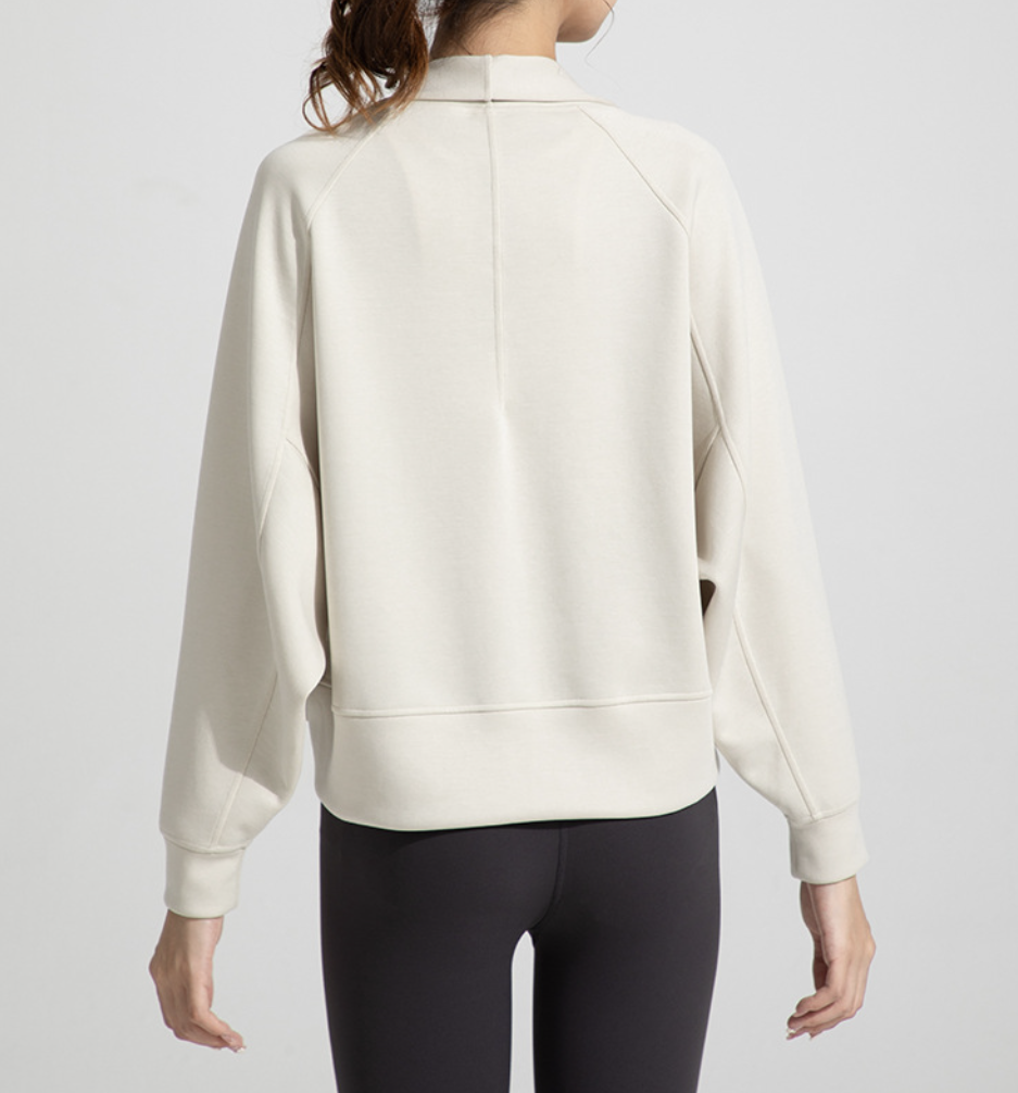 The air layer construction provides light warmth without feeling heavy, making it perfect for layering during cooler days or wearing as a stylish outer layer. Its relaxed drape and long sleeves create an elegant, flowing silhouette that pairs easily with yoga wear, casual outfits, or loungewear.