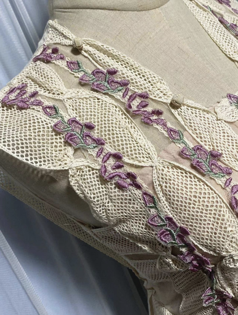 Floral embroidery with beaded detailing