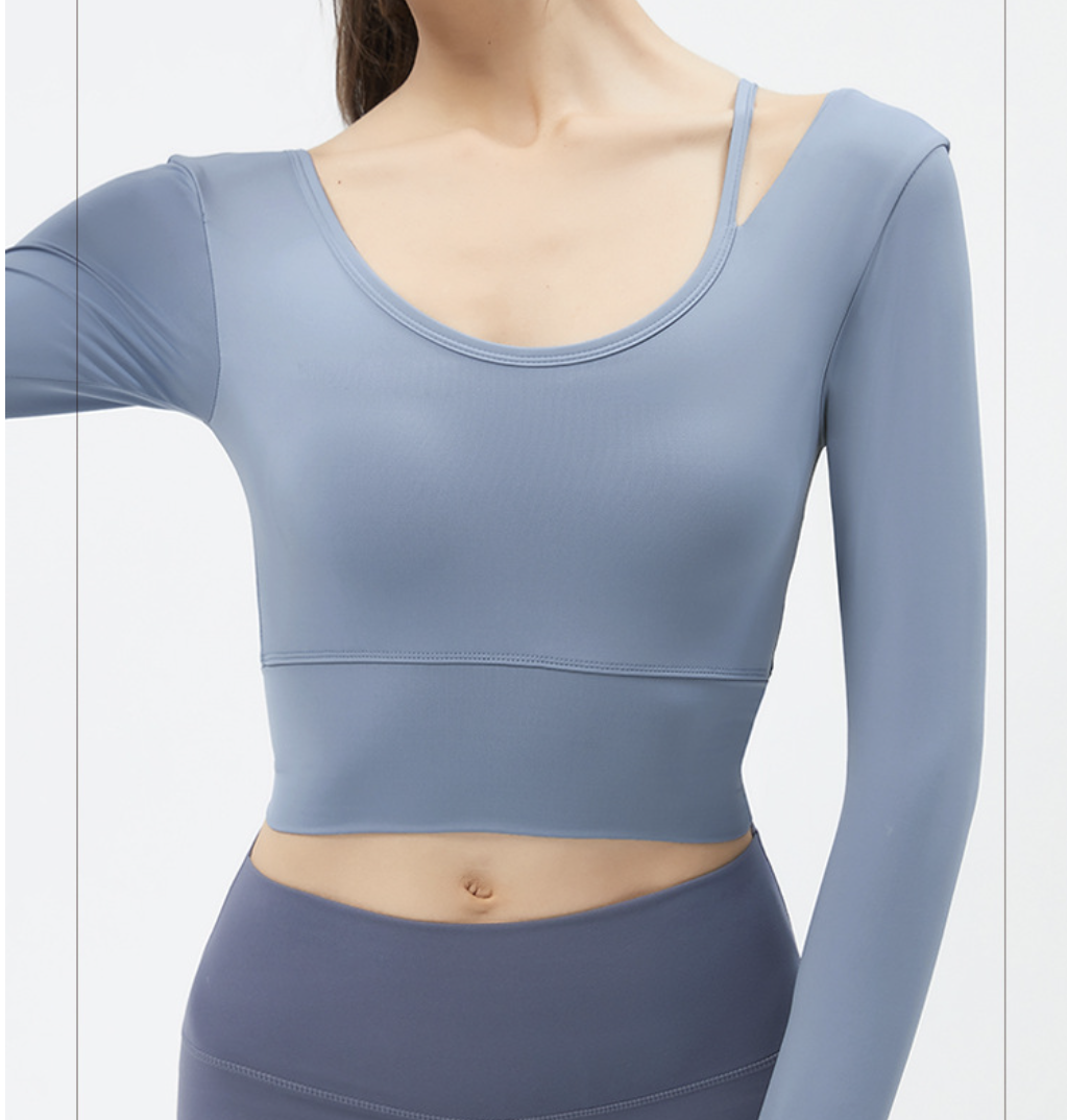 Practical, comfortable, and easy to style, this long-sleeve yoga top is a reliable essential for active and casual wardrobes.